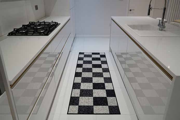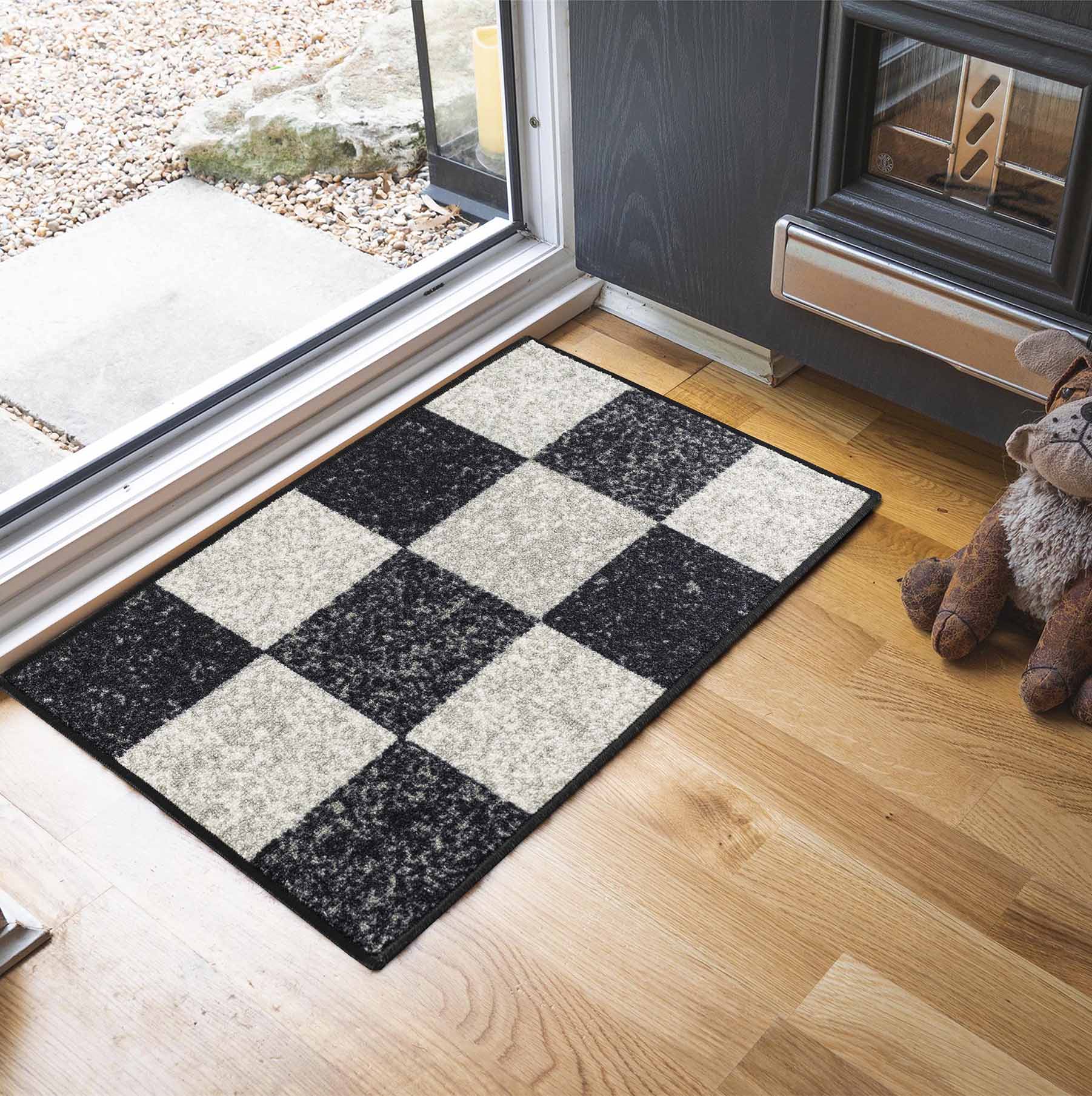 A collection of machine-washable gel back mats in a variety of colours, designs and sizes. Designed to be non-slip on tiles, lino, laminate, and wood flooring, thanks to its non-slip latex backing.
