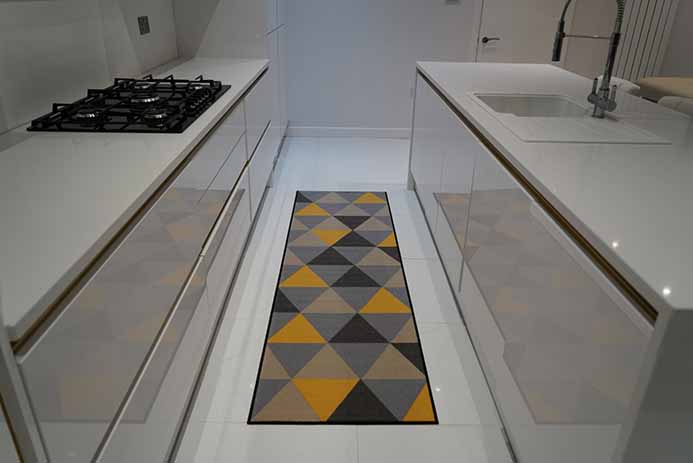 A collection of machine-washable gel back mats in a variety of colours, designs and sizes. Designed to be non-slip on tiles, lino, laminate, and wood flooring, thanks to its non-slip latex backing.