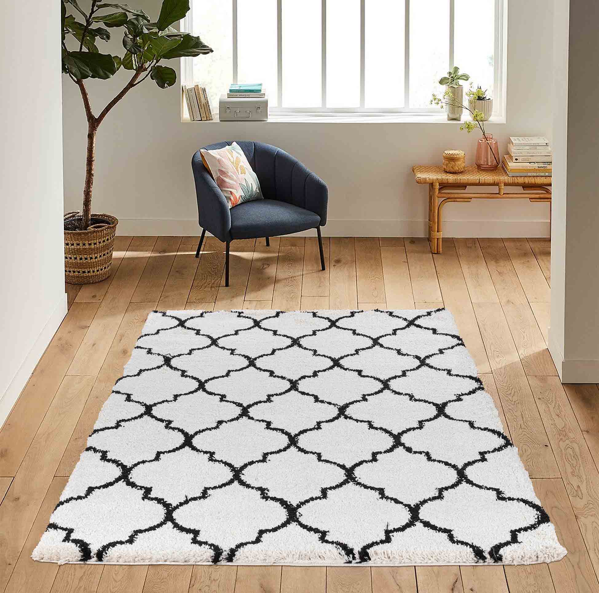 Our charming, traditional Marrakesh rug is inspired by Morocco. Its soft, muted tones are easy on the eyes and complement the simple Moroccan designs. A thick shaggy rug with soft, plush fibres, that are wonderfully soft underfoot.