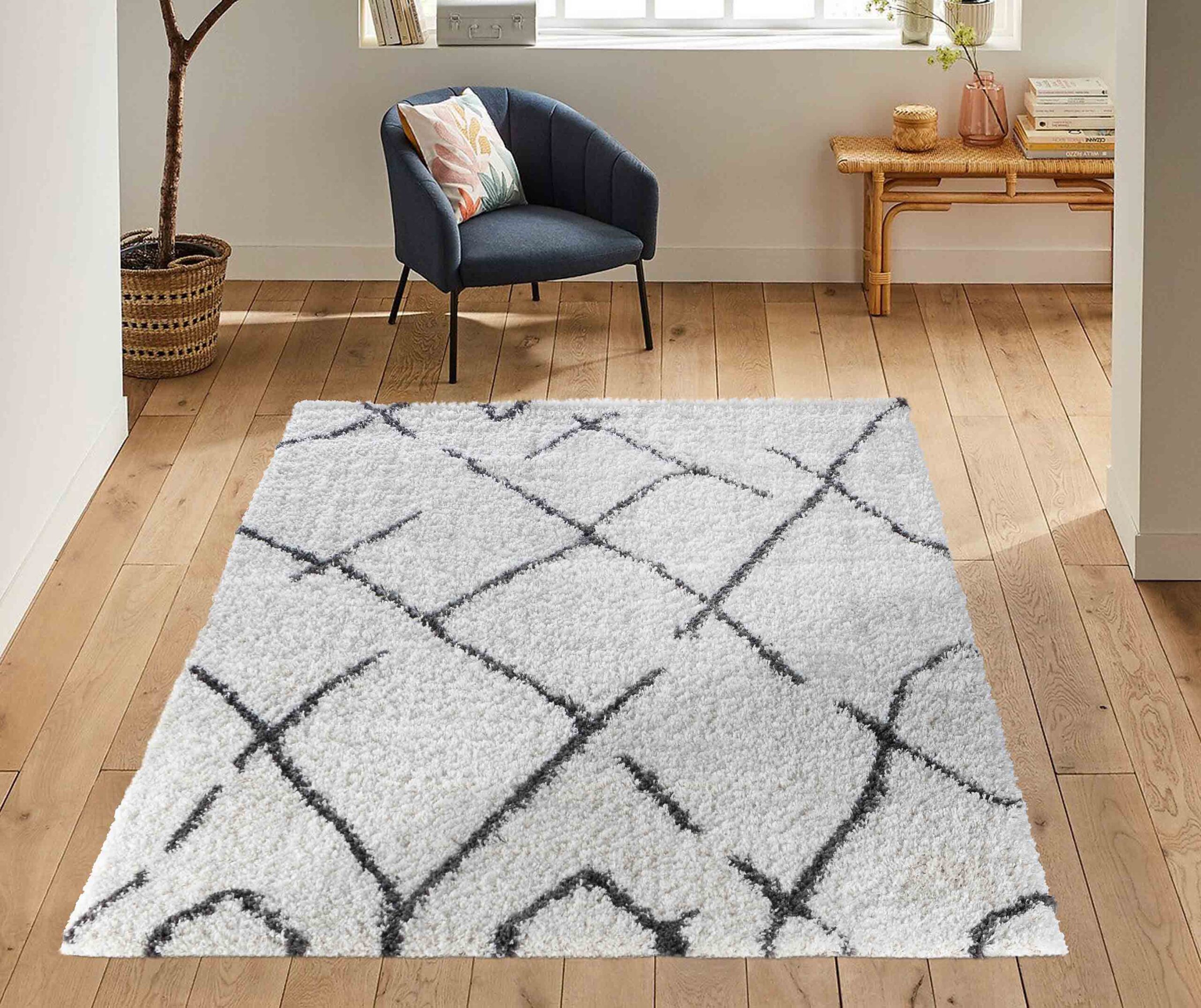 Our charming, traditional Marrakesh rug is inspired by Morocco. Its soft, muted tones are easy on the eyes and complement the simple Moroccan designs. A thick shaggy rug with soft, plush fibres, that are wonderfully soft underfoot.